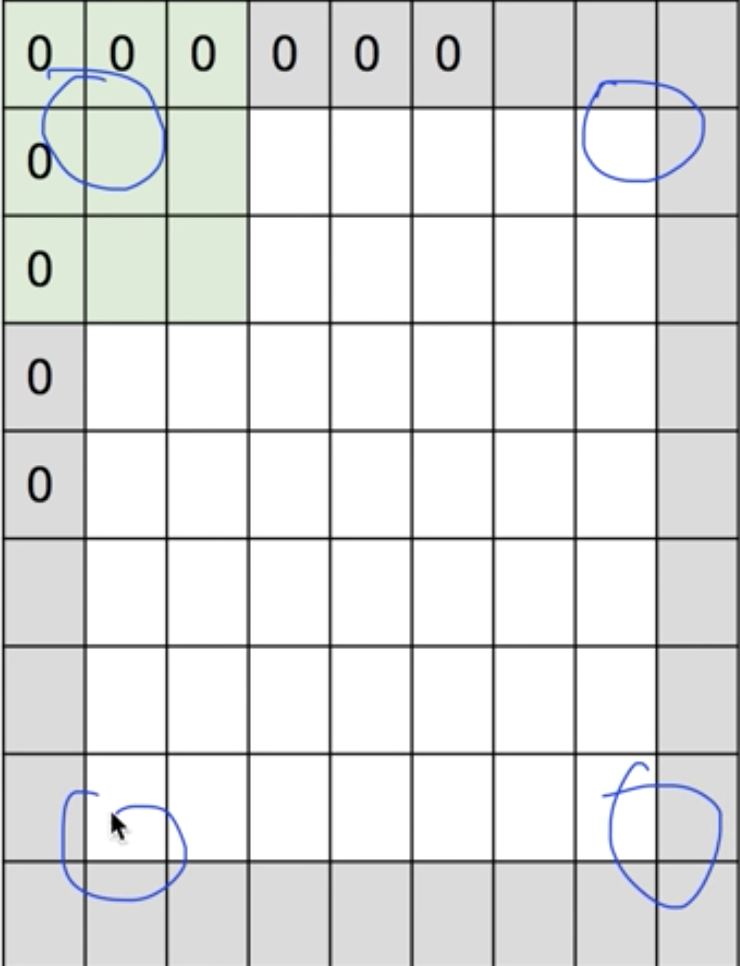 이 그림이 전체 레이어이며 3*3의 레이어 , stride = 1 이라면, padding 은 1 씩 설정된다. padding 은 해당 레이어가 끝이라는 것을 보여주는 일종의 지표 역할을 할 뿐만 아니라 , 움직이는 layer 의 범주를 벗어나지 않는 역할을 도와준다. 보통 stride 와 같은 깊이의 padding 이 설정된다.